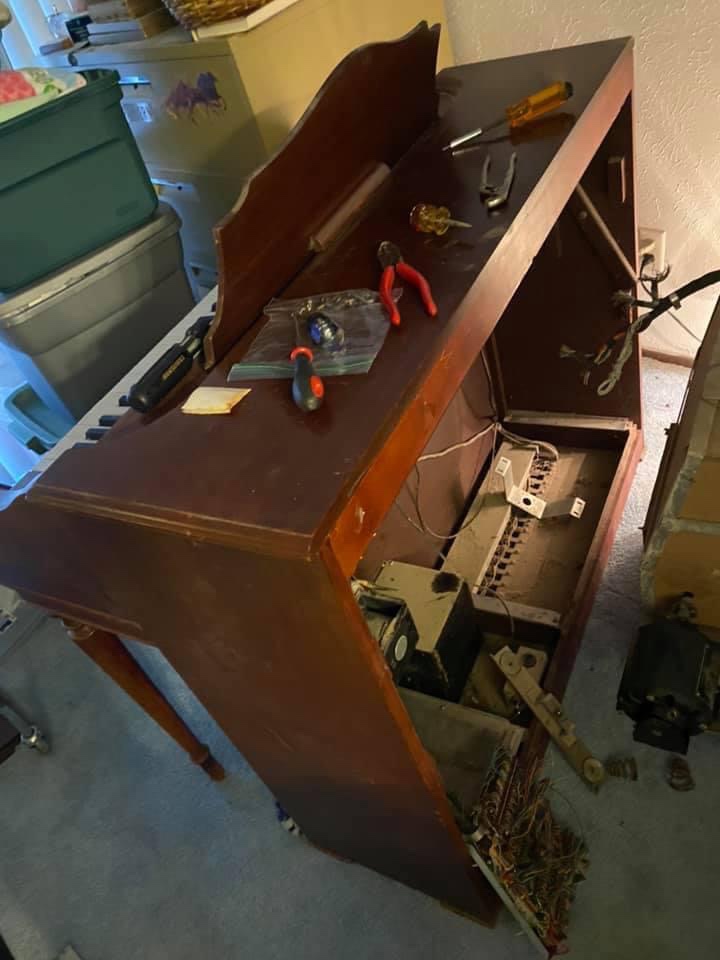 The thing had Vacuum Tube inside! So cool! Her and her mom had so much fun seeing the insides of this organ and maybe not so much fun trying to rip it all out! They sure knew how to build things tough in the 1950s! Plus it actually played well for a good 40 years!